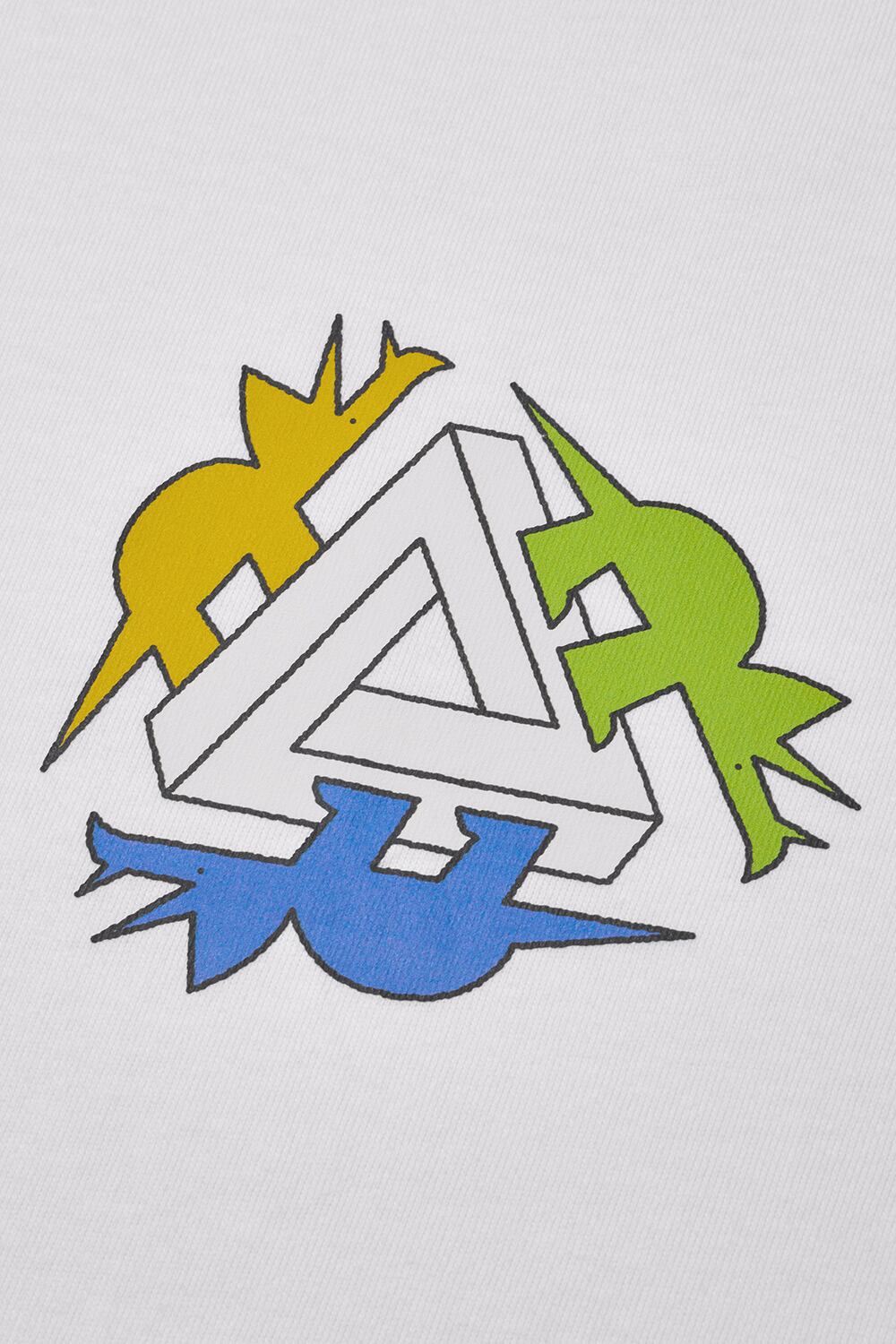 幾何学模様的な4頭のティラノサウルス、一見ストリートっぽいテイストのトリケラトプス、