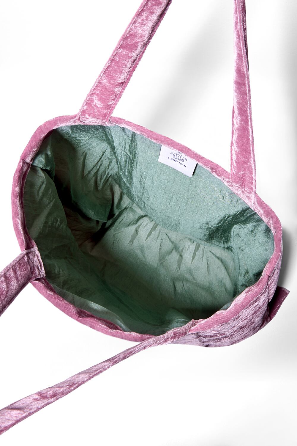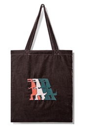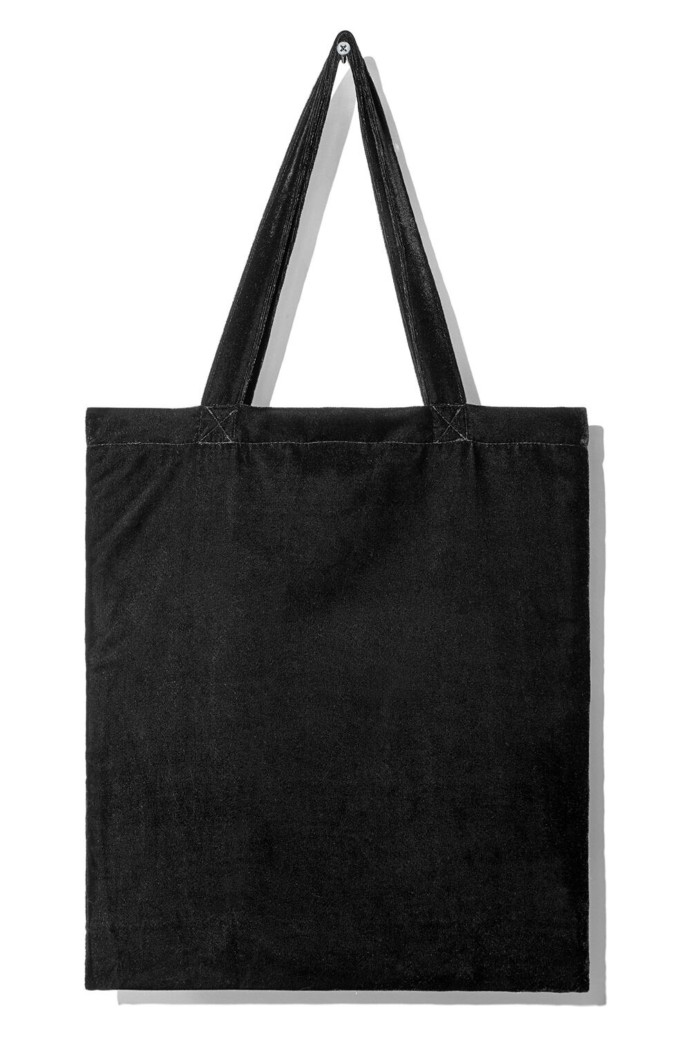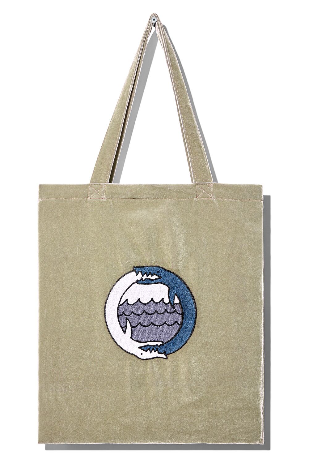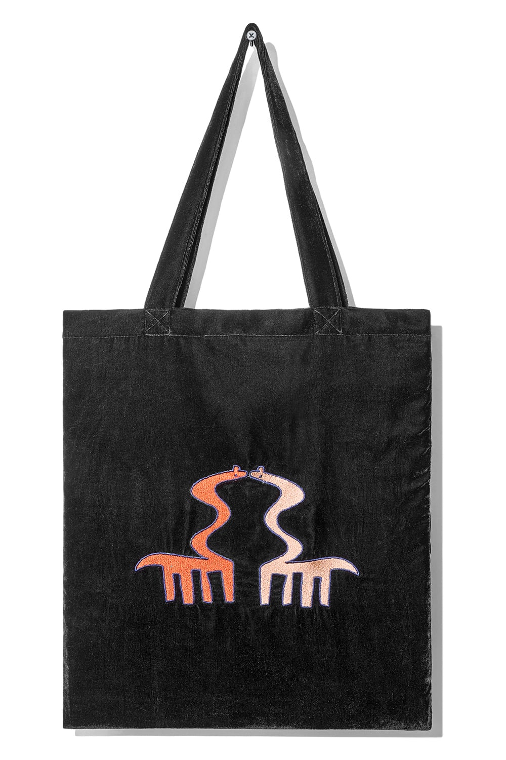 光沢のあるベルベット素材のトートバッグに恐竜の刺繍を施しました。