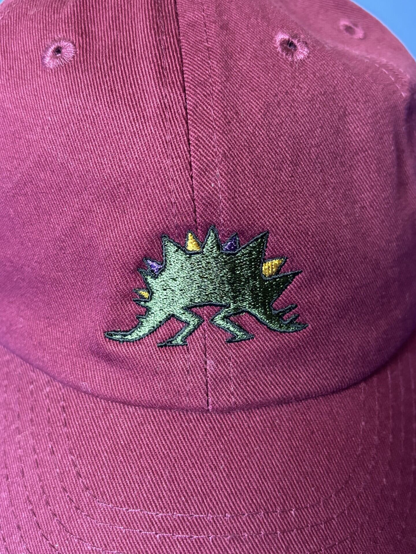 後期ジュラ紀、現在の北米大陸に生息していた、体長7メートルから9メートルほどの植物食恐竜、ステゴサウルスがモチーフとなったデザインのベースボールキャップ。